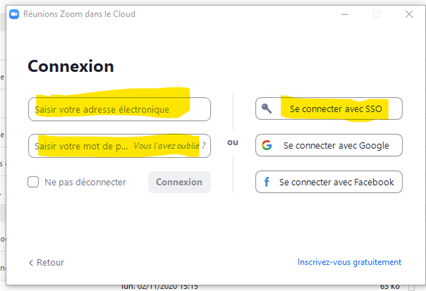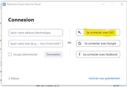 Ensuite pour vous authentifier dans l’application ZOOM vous devez choisir « se connecter avec SSO »: