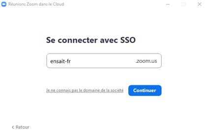 Si vous choisissez « se connecter avec SSO » vous devez indiquer le domaine ensait-fr